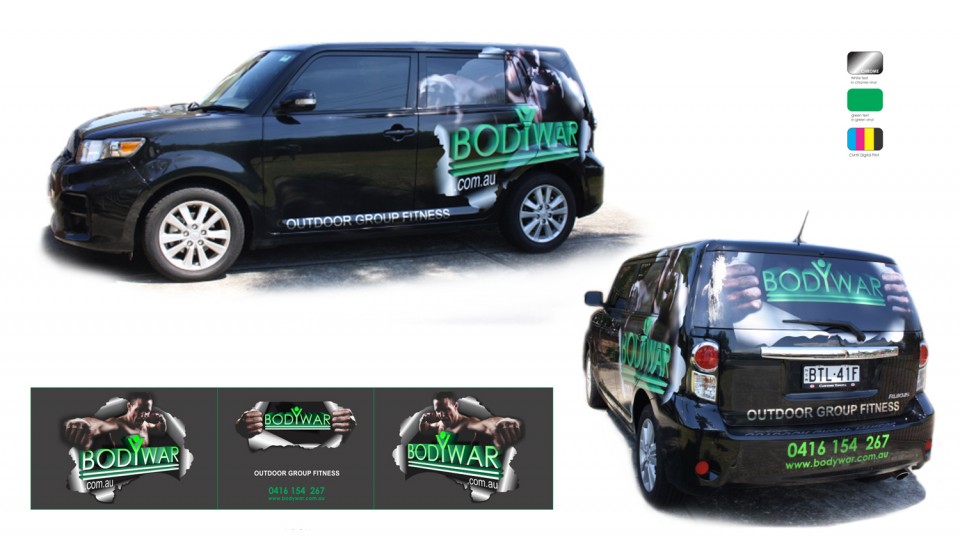 Vehicle Branding ' Punching through' Representation of strength and resilience for Body Training.. Design, Print and Install.